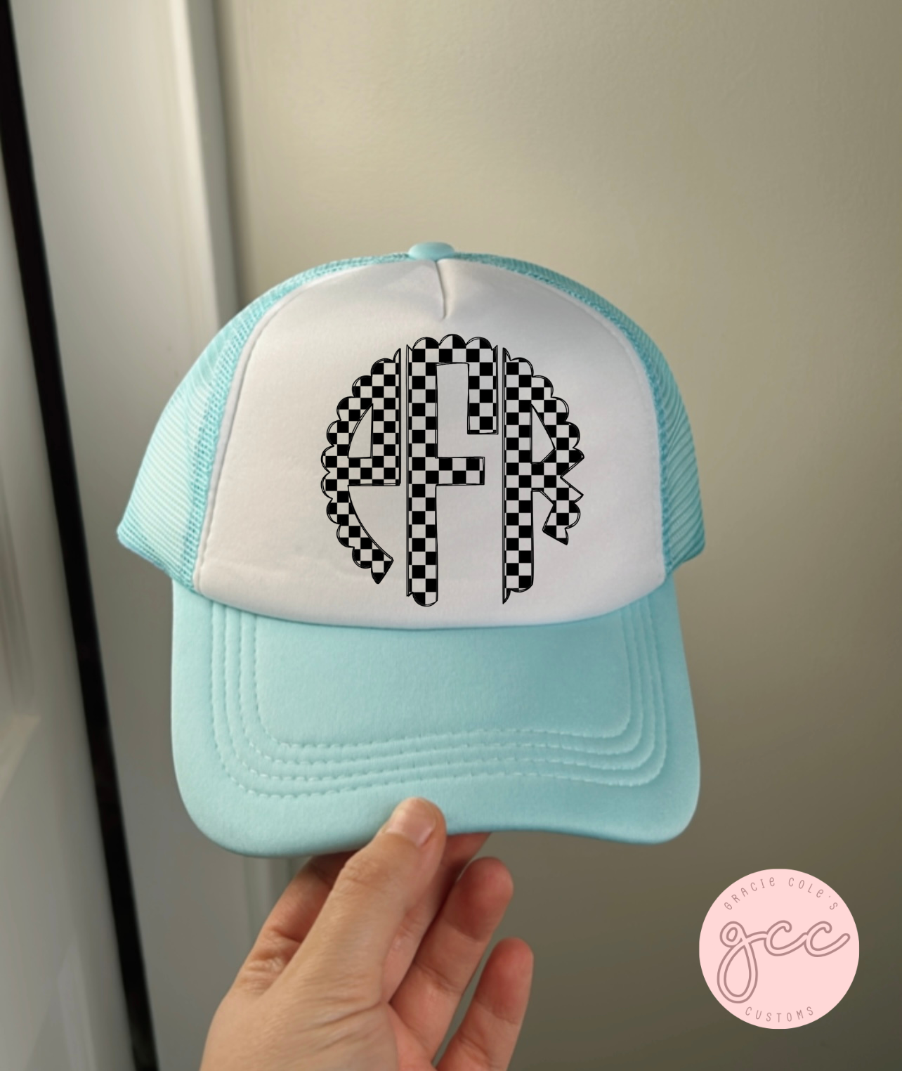 Checkered Monogram Trucker Hat