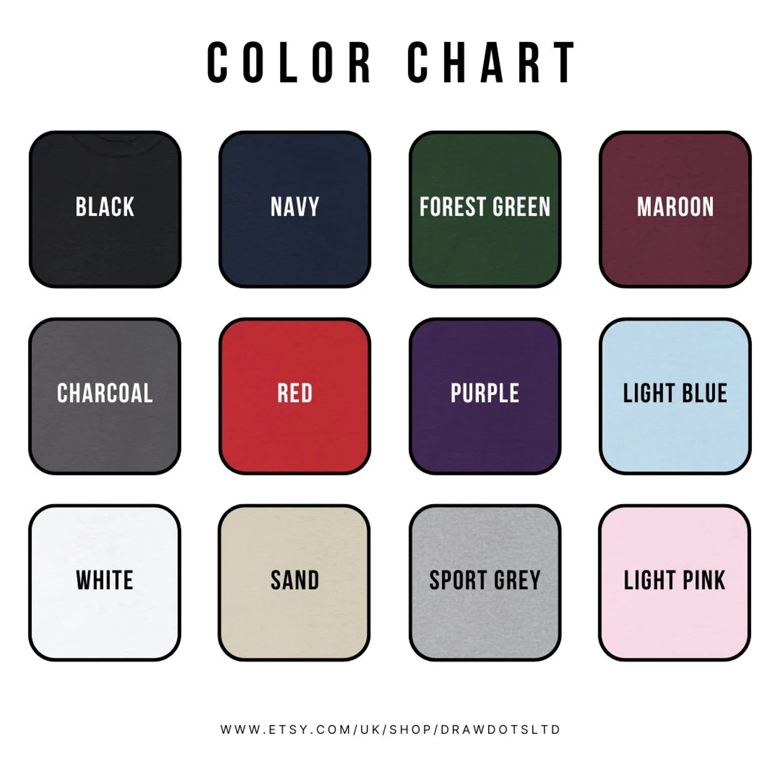 On Gildan Unisex 50/50 Sweatshirt. Color Chart attached.